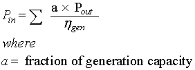 | Electricity generation technology | Percentage of generation capacity | Generation efficiency | Transmission and distribution efficiency |