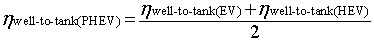 For e.g. well-to-wheel efficiency of EV is 22% × 72% = 15.8%. In calculation of Well-to-Tank efficiency of PHEVs, it is assumed that half of the time it is functioning as EV and the rest as HEV (diesel). Therefore, it is safe to consider its efficiency to be the average of EV and HEV.
