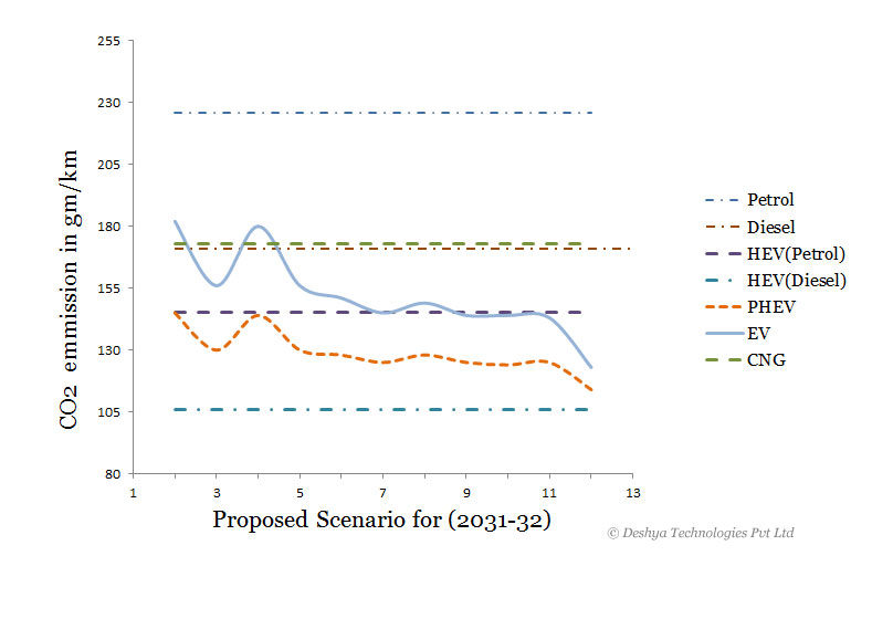 | Scenario | EV CO2 emission ib gm/km | PHEV CO2 emission in gm/Km |