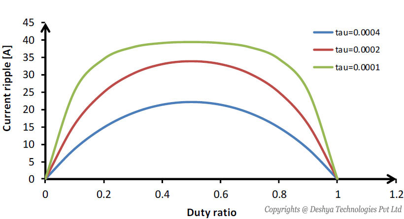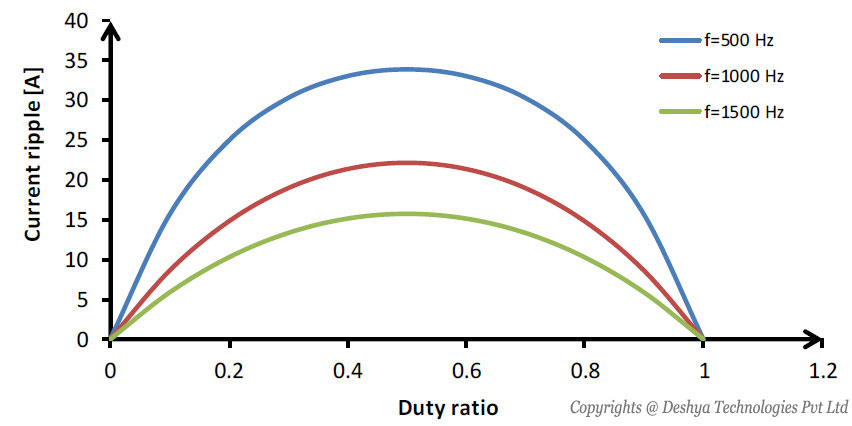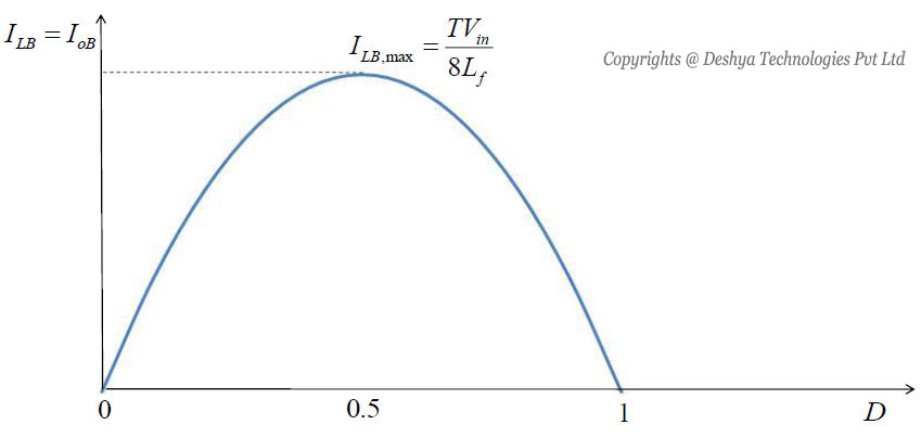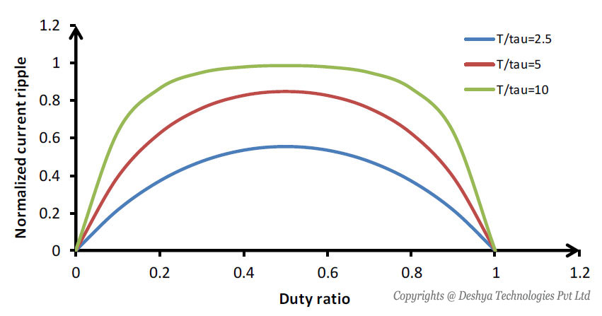 - The load current ripple becomes maximum for a duty ratio of 0.5.