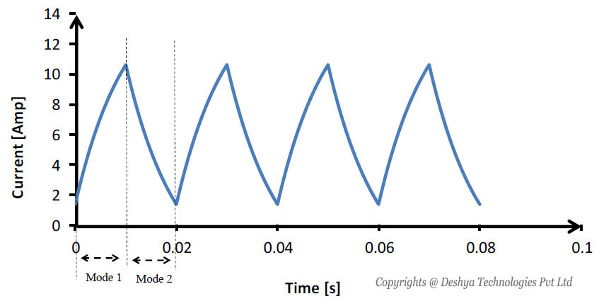 At the end of mode 2, the converter enters mode 1 again. Hence, the initial value of current in