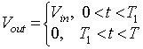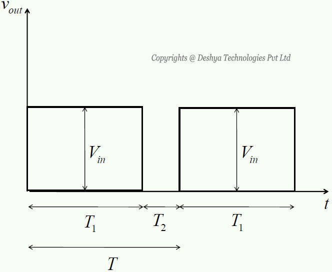 Figure 8.2a: Step down operation.. When the switch S1 is closed for time duration T1, the input voltage Vin appears across the load. For the time duration T2 switch S1 remains open and the voltage across the load is zero. The waveforms of the output voltage across the load are shown in figure 8.2b