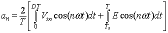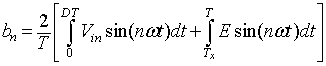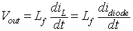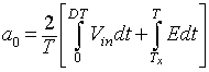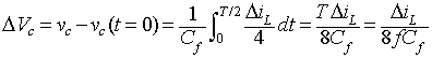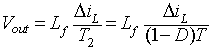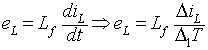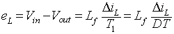 In the time interval ∆2T the current in the inductor Lf is zero and the power to the load resistance is supplied by the filter capacitor alone. The inductor voltage eL during this time interval is zero. The integral of the inductor voltage over one time period is zero and in this case is given by