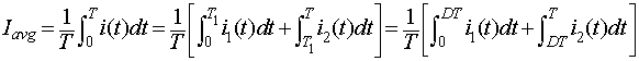 The average capacitor current, which flows into it for (T1/2 + T2/2 = T/2) is